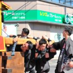 - 南の前をこどもの道吹きが通ります。囃子のおじさんたちが嬉しそうに拍手してくれます。