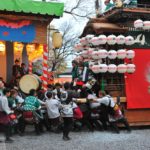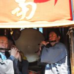 - 宵宮は、当番区が先に神社へ上がっていきます。山車の上がっていく順番と同じ。さて、囃子入れますか…