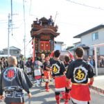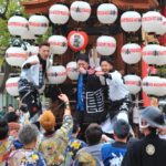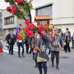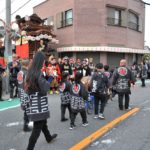 - 囃子の子どもたち、楽しそうに山車を曵きます。