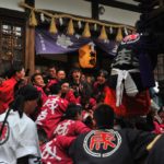 - 太鼓運びチーム、ここで一旦山車から離れて、公民館へ