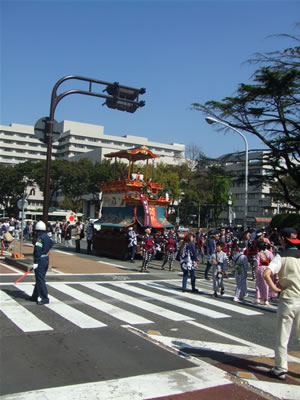 山車の大きさは町の道幅で測ることが出来ます。名古屋でも本町筋の福禄寿車は山車が大きいのに対し、花車の山車は細い路地も曳く必要あるため小振りです。