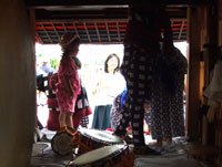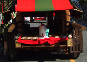 前後筒抜けになっています。また山車の側面は、開いており、風通しがよくなっています。人が乗る部分については1.5メートルほどの横幅があり、大人3人が並んでも余裕の広さがあります。