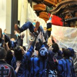 現在、曳かれている山車は大正3年(1914)に建造されたもので、今年でちょうど100年!というわけで記念のイベントを企画されました。二日間に渡って、町内だけではなく、中組の名士のもとへ曳きまわされました。